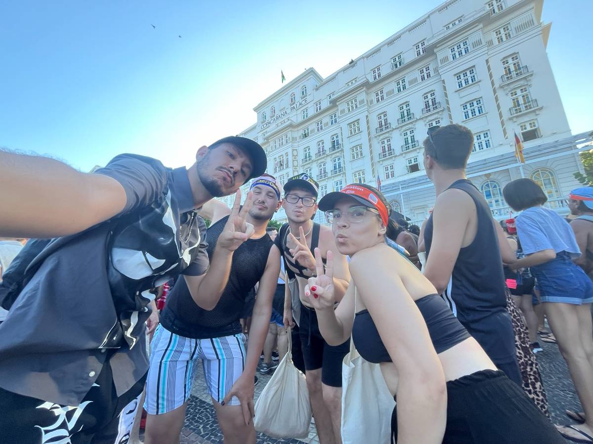 Vamos desembarcar, caminhar até o metro e seguiremos juntos até Copacabana.